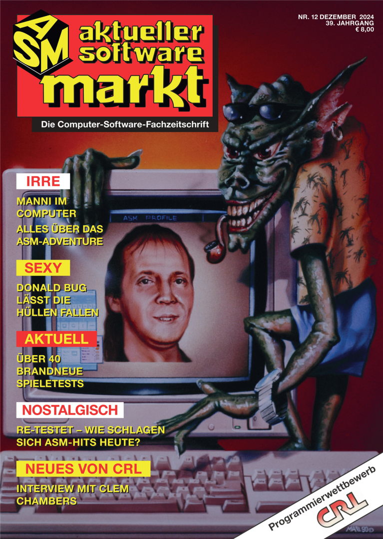 Die ASM ("Aktueller Software Markt") war DIE Software-Zeitschrift der späten 80er Jahre. Mit ihrem lockeren Schreibstil, dem chaotischen Layout und den zahlreichen Tests für so ziemlich alle Systeme, die damals am Markt waren, begeisterte sie jeden Monat ihre meist jugendlichen Leser. 2023 haben wir das Magazin wiederbelebt und seitdem erscheint einmal im Jahr eine neue ASM, die an die damaligen Traditionen anknüpft. Erhältlich sind die Ausgaben bei APCTCP: